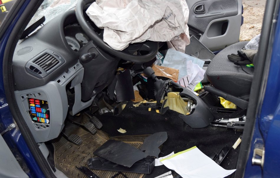 Galéria k článku Čelný náraz do betónového plota: Auto skončilo totálne na šrot, FOTO