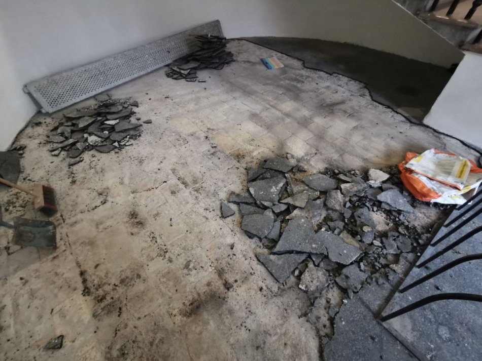 Galéria k článku Nevkusný asfalt je preč: Historická budova má po rokoch pôvodnú podlahu, FOTO