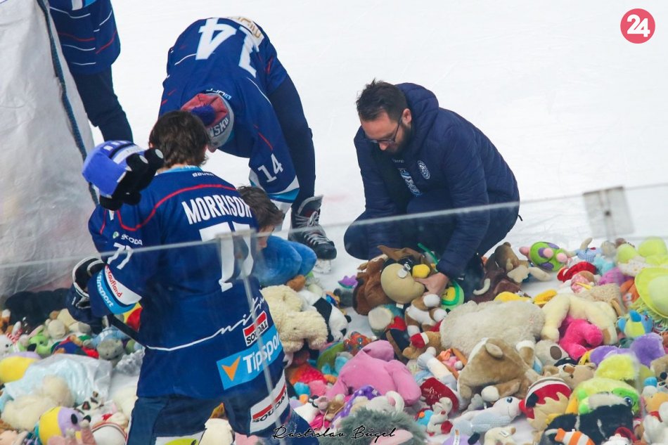 Galéria Fanúšikovia zahádzali ľad plyšákmi