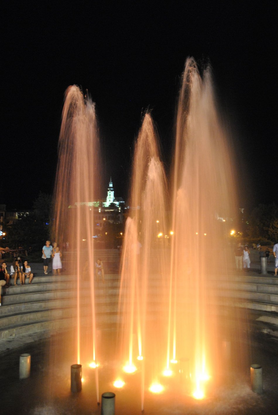 Galéria k článku Vizuálne divadlo v meste: Farebná voda vo fontáne láka Nitranov