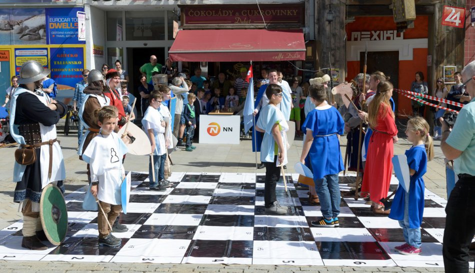 Galéria k článku FOTO: Na pešej zóne v Nitre sa hral živý šachový zápas v historickom šate