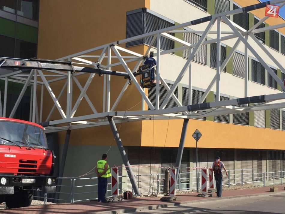 Galéria FOTO: Prepojenie nemocničných pavilónov rastie, postavená je kovová konštrukcia