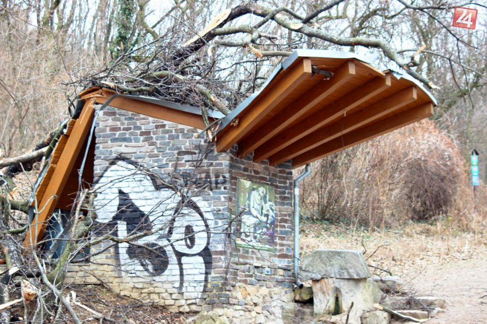 Galéria FOTO: Spadnutý strom narobil paseku. Zničil prístrešok pri Svoradovom prameni