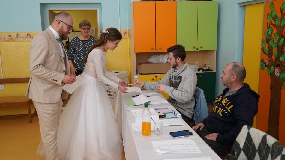Galéria k článku Na tento deň nikdy nezabudnú: Voliť prišli aj čerství MLADOMANŽELIA, FOTO
