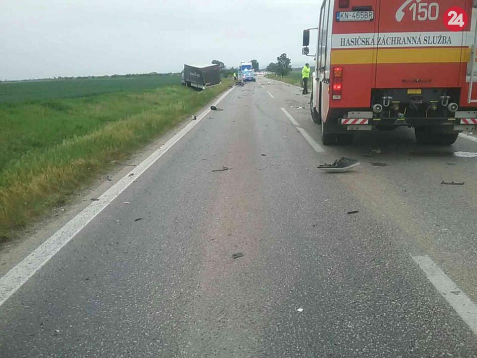 Galéria k článku Tragická zrážka kamióna s autami: Dvaja mŕtvi, traja zranení, FOTO