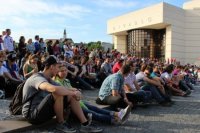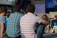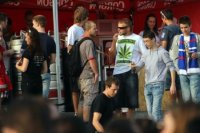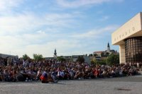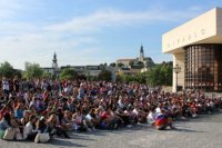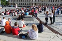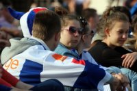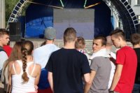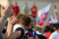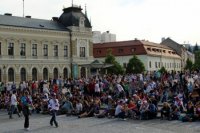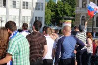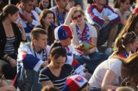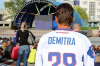 Sledovanie hokeja na Svätoplukovom námestí