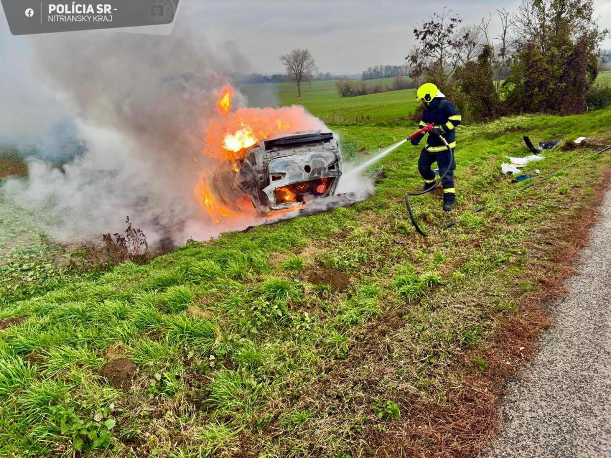 Galéria k článku Auto ZHORELO, vodič z neho stihol UJSŤ