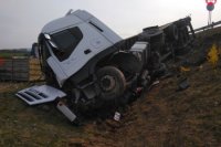 Hrozivá nehoda na R1: Kamión naložený hydinou zišiel z cesty a prevrátil sa