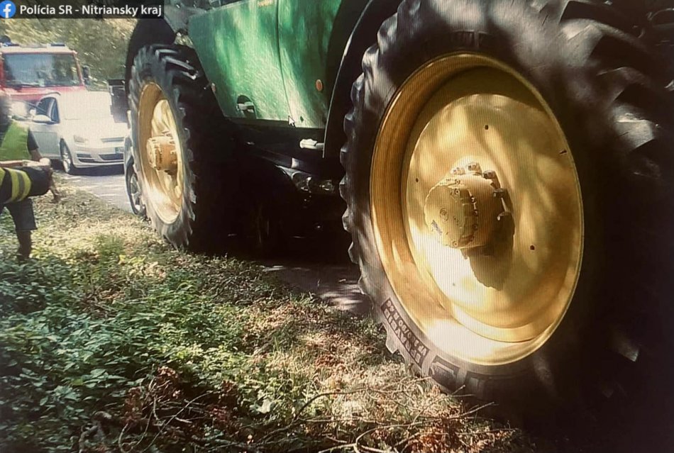 Galéria k článku Pracovný stroj začal cúvať: Pod jeho kolesami ostalo zakliesnené auto, FOTO