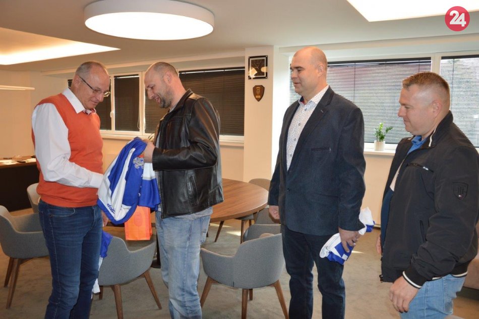 Galéria k článku Los Amateros v šalianskej radnici: Primátora navštívili s hokejovým dresom, FOTO