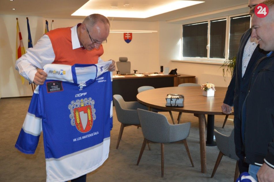 Galéria k článku Los Amateros v šalianskej radnici: Primátora navštívili s hokejovým dresom, FOTO