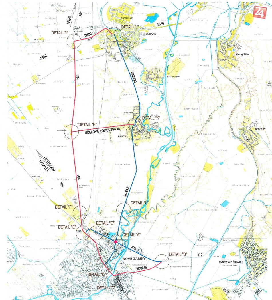 3. Mapa trasy tranzitnej obchádzky smer Bánov - Foto: Oficiálne stránky mesta Nové Zámky