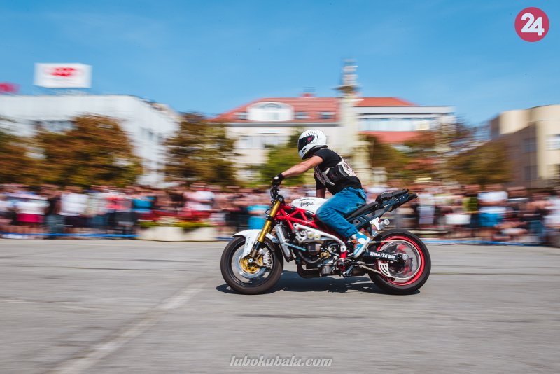 Galéria k článku Centrum Zámkov zaplavili motorkári: Kaskadéri rozpálili Hlavné námestie, FOTO