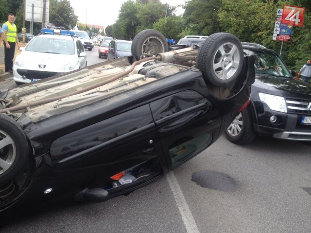 Galéria k článku FOTO z miesta nehody: Auto na moste v Zámkoch skončilo na streche!