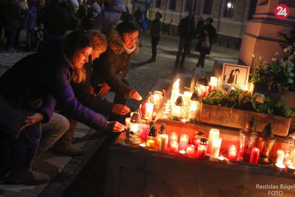 Galéria k článku Nitrania si uctili pamiatku zavraždeného páru: Zapálili sviečky, spievali hymnu, FOTO a VIDEO