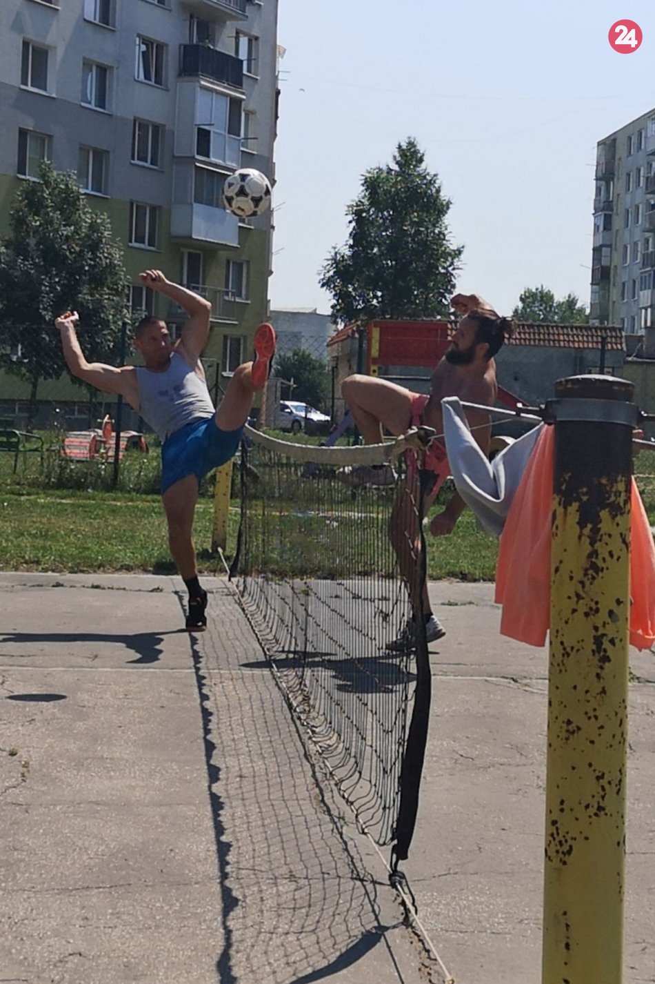 Galéria k článku Športové zápolenia pod oknami panelákov: Nadšenci zorganizovali turnaj v nohejbale, FOTO