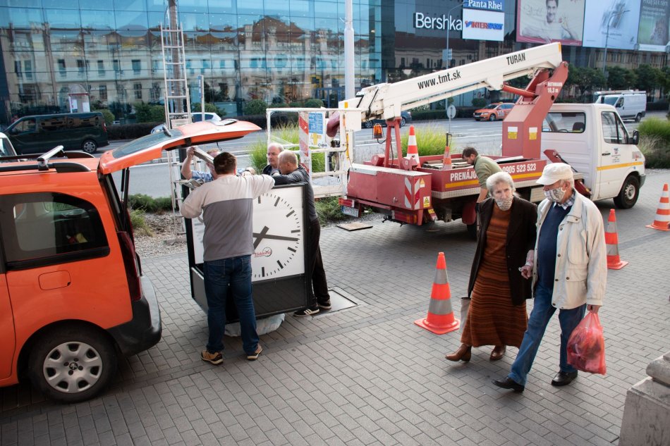 Galéria k článku Pred tržnicu postavili po roku nové hodiny: Ukazujú čas, dátum aj teplotu, FOTO
