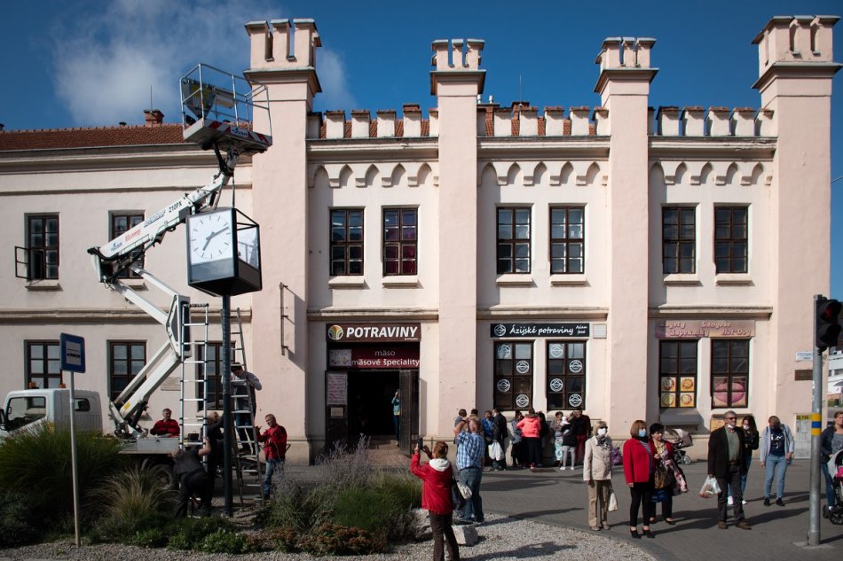 Galéria k článku Pred tržnicu postavili po roku nové hodiny: Ukazujú čas, dátum aj teplotu, FOTO