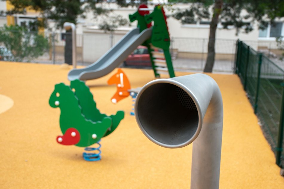 Galéria k článku Pieskovisko v tieni aj ŠPECIÁLNA hojdačka: Na Klokočine vzniklo nové ihrisko