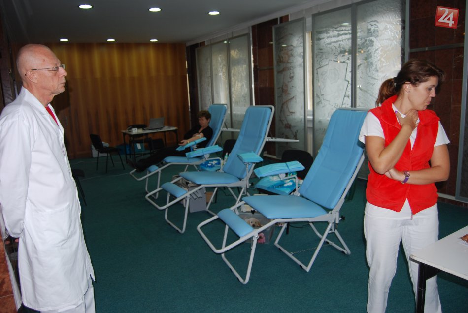 Galéria k článku Mestský úrad netradične: Biele plášte, hadičky a ihly. FOTO z miesta