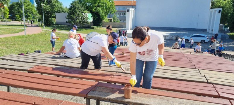 Galéria k článku Desiatky dobrovoľníkov sa pustili do práce: Vynovili lavičky na amfiteátri, FOTO