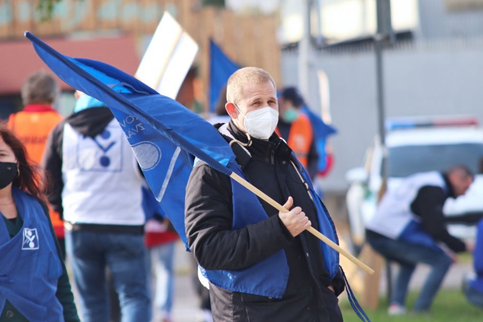 Galéria k článku Odborári opäť protestovali: V Nitre zablokovali cestný priechod, FOTO a VIDEO