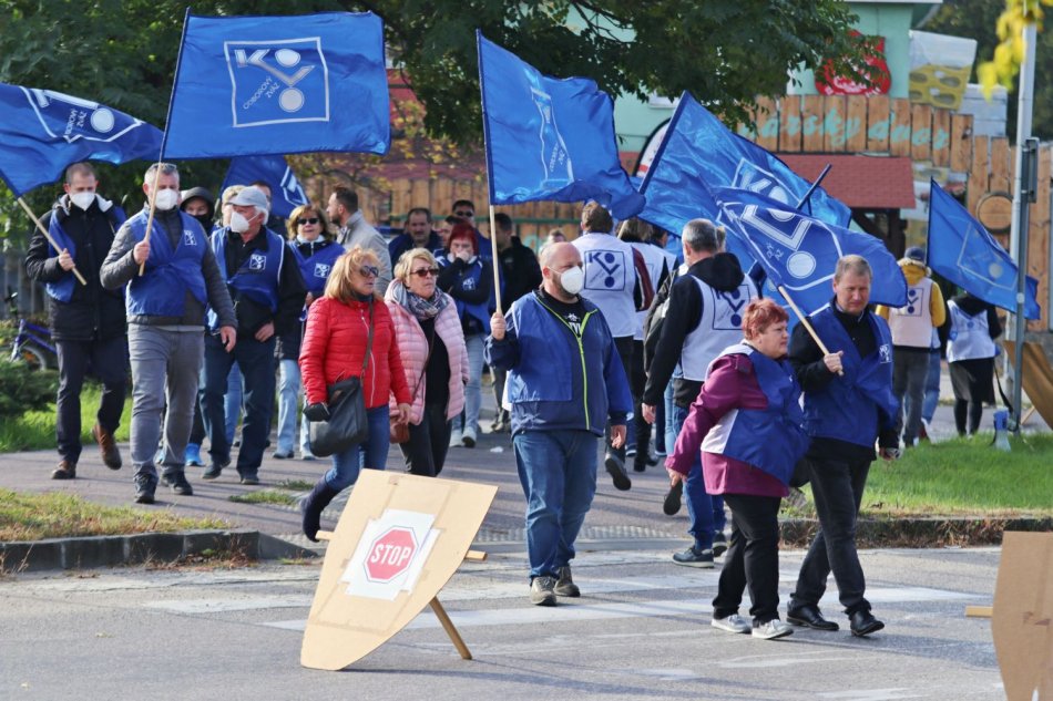 Galéria k článku Odborári opäť protestovali: V Nitre zablokovali cestný priechod, FOTO a VIDEO