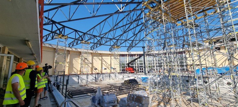 Galéria k článku Na pôvodnej streche plavárne bolo uložených až 500 TON: Novú budú držať 4 nosné stĺpy