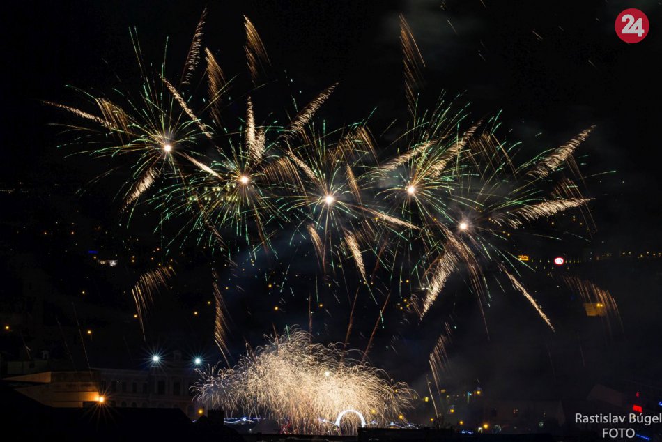 Galéria k článku Pohľady upreté na oblohu: Vianočné mestečko v Nitre rozžiaril ohňostroj, FOTO