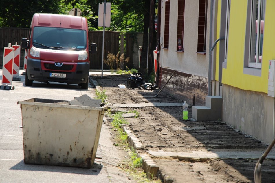 Galéria k článku Práce v uliciach pokračujú: Viaceré opravené chodníky už zdobia nové stromy, FOTO