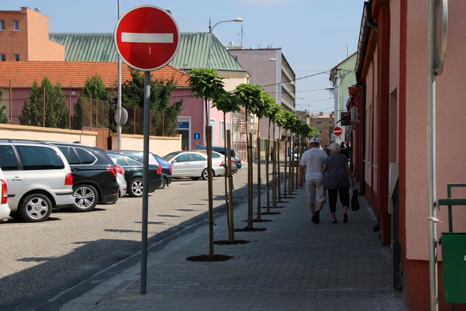 Galéria k článku Práce v uliciach pokračujú: Viaceré opravené chodníky už zdobia nové stromy, FOTO