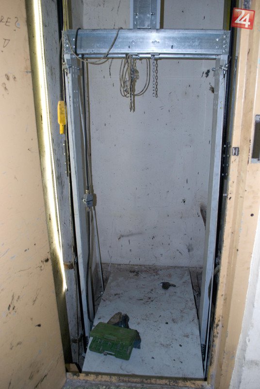 Galéria k článku Dráma pri výmene výťahovej kabíny v Zámkoch: Pracovníci spadli z ôsmeho poschodia