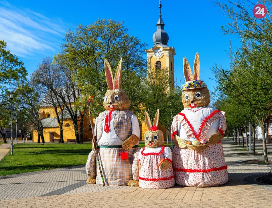Galéria k článku Pokračujú v tradícii: Námestie v neďalekej obci zdobí veľkonočná zajačia rodina