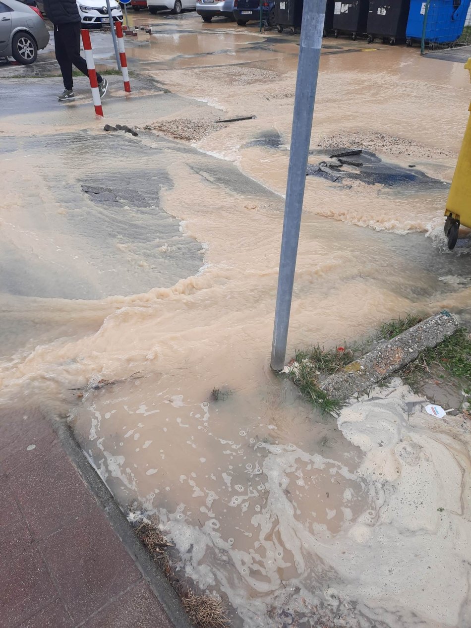 Galéria k článku Prasknuté potrubie na Dieloch narobilo veľké problémy: Chodník sa prepadáva, FOTO