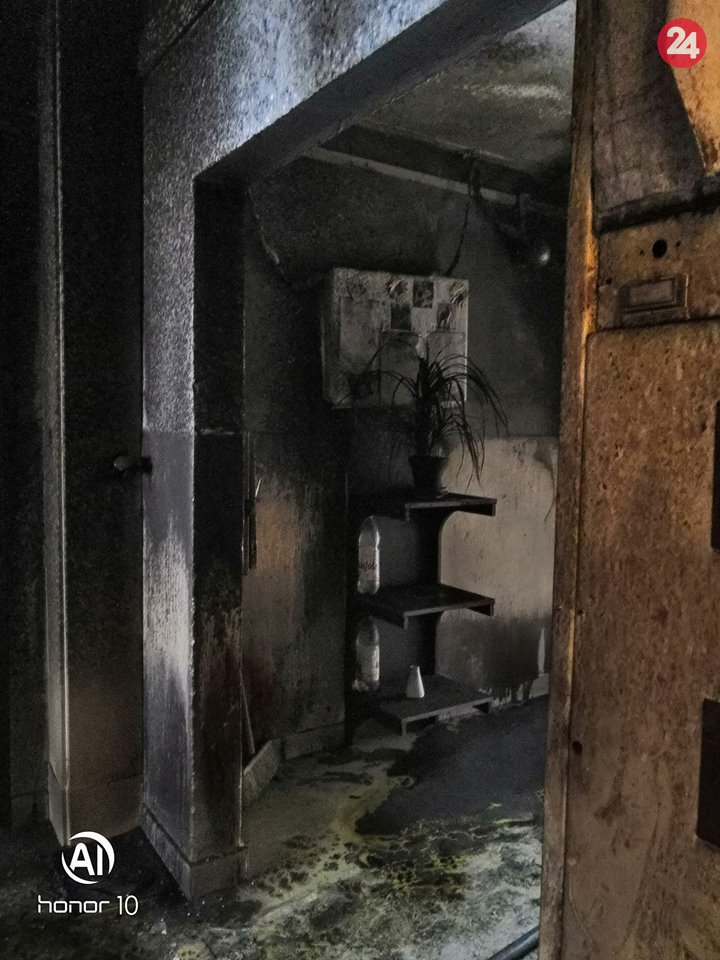 Galéria k článku Plamene zachvátili panelák v Zlatých Moravicach: Obyvateľov museli evakuovať