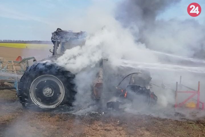 Galéria k článku Zásah hasičov na poli neďaleko Nitry: Plamene zachvátili traktor, FOTO