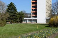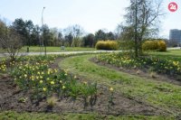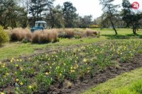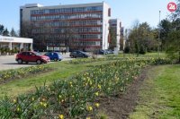 Pred aulou SPU kvitnú záhony kvetov