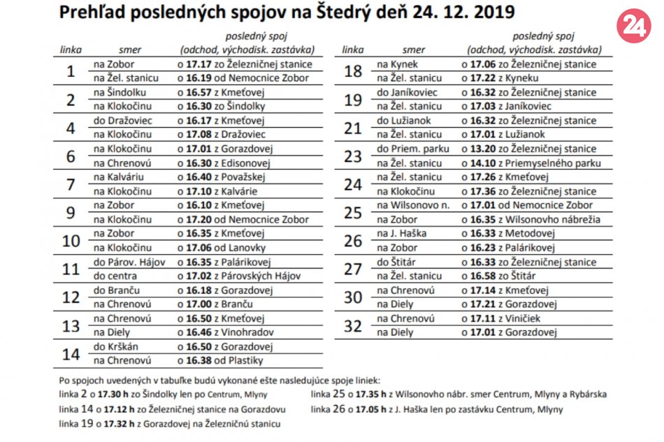 Galéria Prehľad posledných spojov na Štedrý deň a Silvester