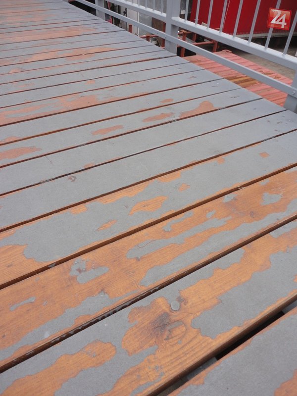 Galéria k článku Zlá robota ohrozuje zdravie: Protišmykový náter na lávke je fuč!
