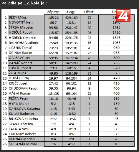 Galéria k článku V 12. kole Zvonice sa z triumfu tešil Ivan Novotný