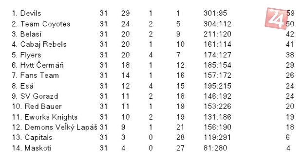 Tabuľka po 31.kole I.FHBL