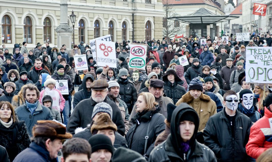 Účastníci protestu Gorila dva v Nitre na Svätoplukovom námestí 3. februára 2012.