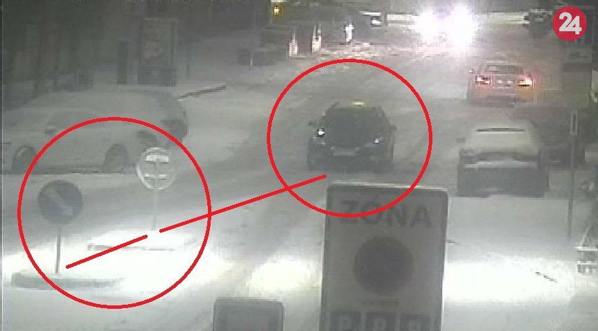 Galéria k článku Taxík jazdil v Nitre po strede rušnej cesty: Zdemoloval dve značky a pokračoval, FOTO