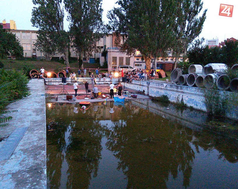 Galéria k článku Starý bazén v centre Nových Zámkov ožil: Na jeho dne sa odohral živý koncert
