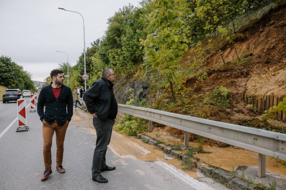 Galéria k článku V Nitre sa zosunul svah: Čiastočne ZABLOKOVAL chodník aj cestu, FOTO