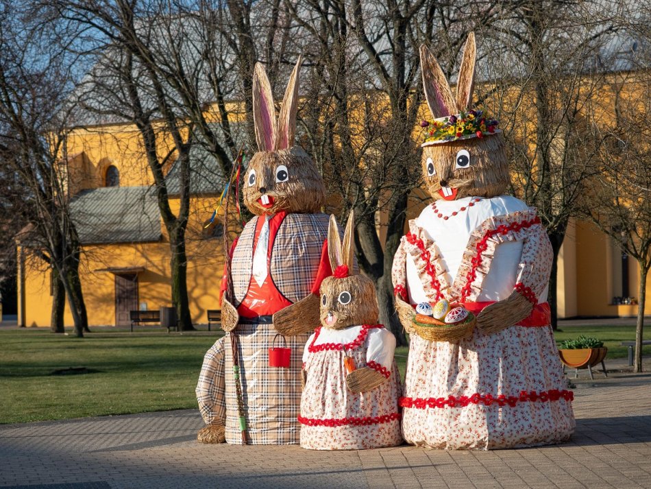 Galéria k článku Mojmírovce majú opäť unikátnu výzdobu: Sviatky už víta zajačia rodinka, FOTO