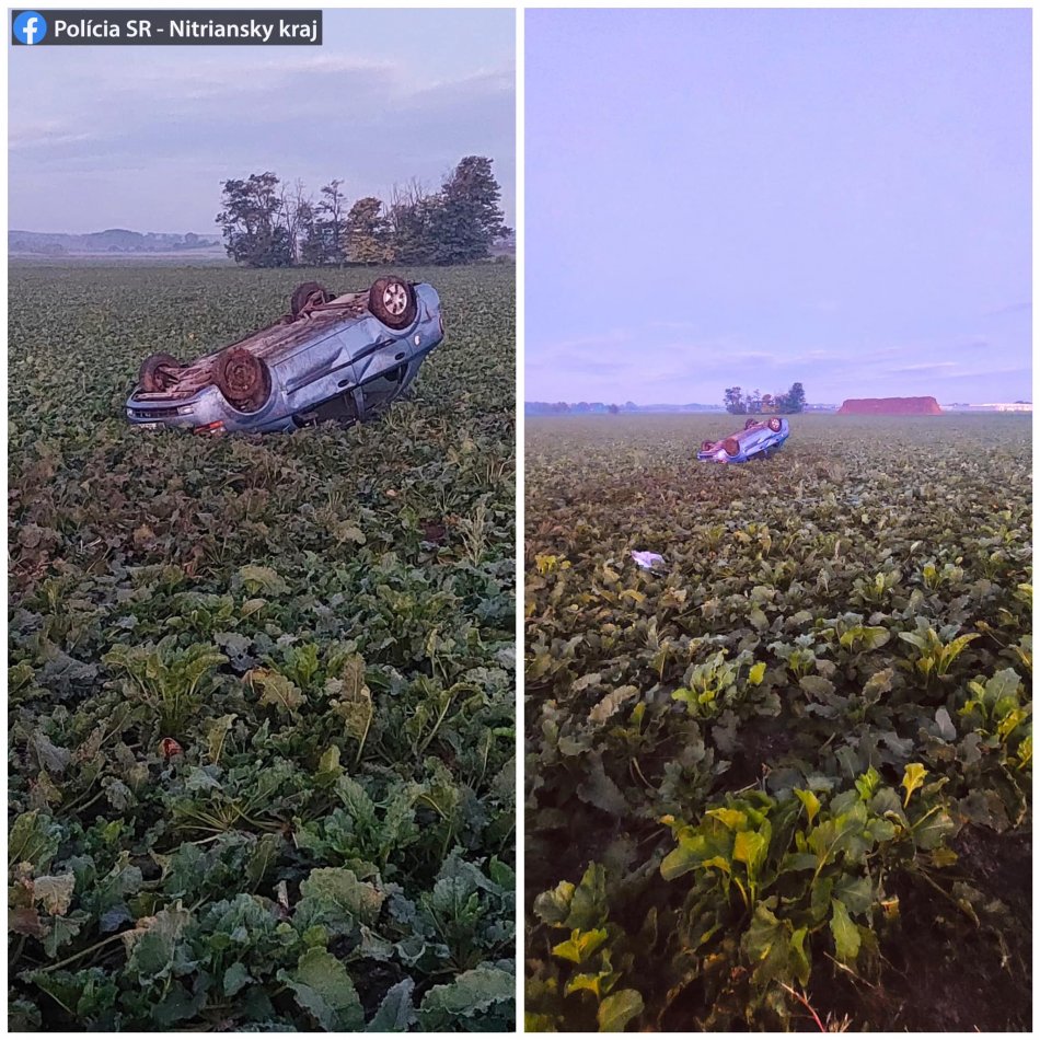 Galéria k článku Šmyk a auto PREVRÁTENÉ na strechu: Vodič sa chcel vyhnúť ZAJACOVI, skončil v poli