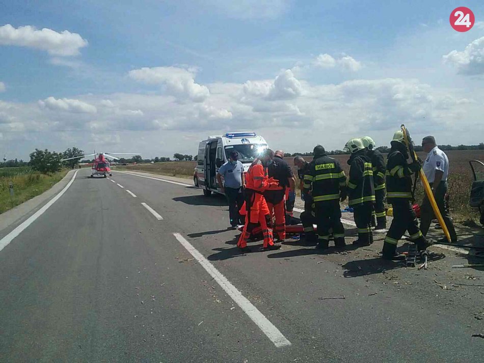 Galéria k článku Auto vrazilo do stromu a začalo horieť: Zraneného vodiča previezol vrtuľník, FOTO