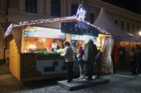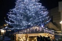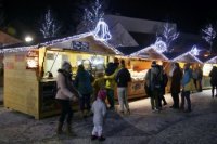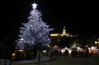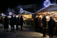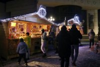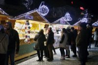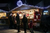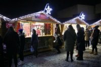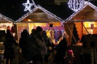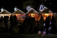 Večerná atmosféra vo vianočnom mestečku