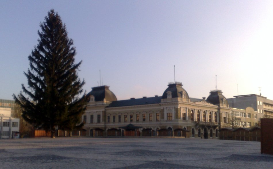 Galéria k článku Na Svätoplukovom námestí už stojí stromček. Stavajú sa aj stánky